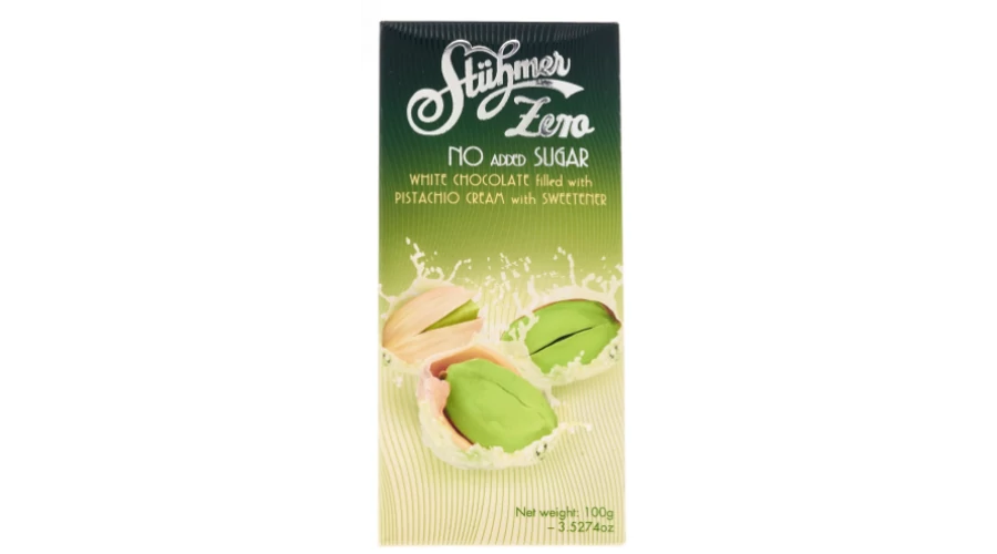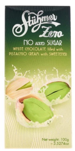Összetevők: fehércsokoládé édesítőszerrel (édesítőszer: maltitol, kakaóvaj, zsíros tejpor, emulgeálószer: szójalecitin, aroma: természetes vanília), pisztácia paszta 13%, étkezési só.
